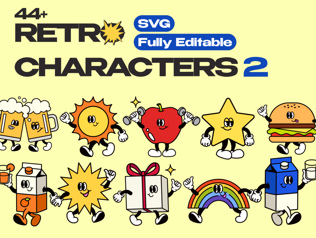 Looking to create an inventive and creative looking piece of artwork that can really make the right impression? Then take a look at our RETRO CHARACTERS 2 today. This package comes with all manner of excellent items included, with 44+ RETRO CHARACTERS 2 designed for easy editing, adjustment, and mastering.