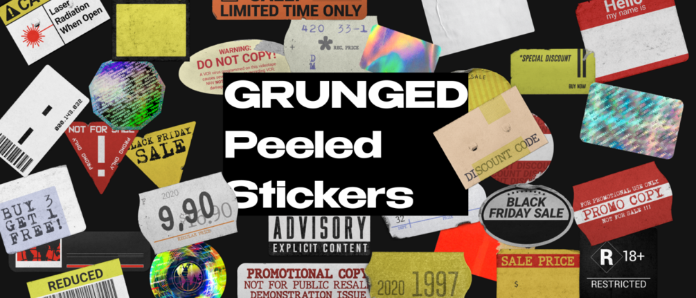 50+ GRUNGED Peeled Stickers + 5 Plastick Package