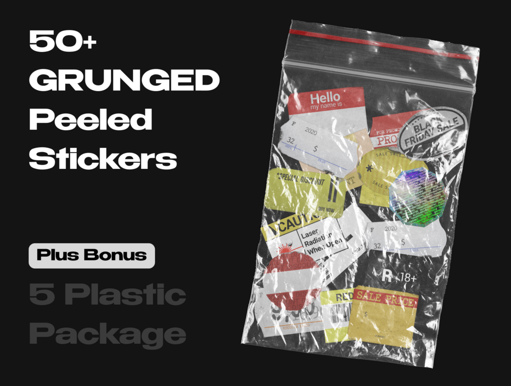 Looking to create an inventive and creative looking piece of artwork that can really make the right impression? Then take a look at our GRUNGED Peeled Stickers collection today. This package comes with all manner of excellent items included, with 50 peeled sticker mock-ups designed for easy editing, adjustment, and mastering. You’ll also get 5 Plastick Package; perfect for creating meaningful artistic content that is sure to entice buyers!