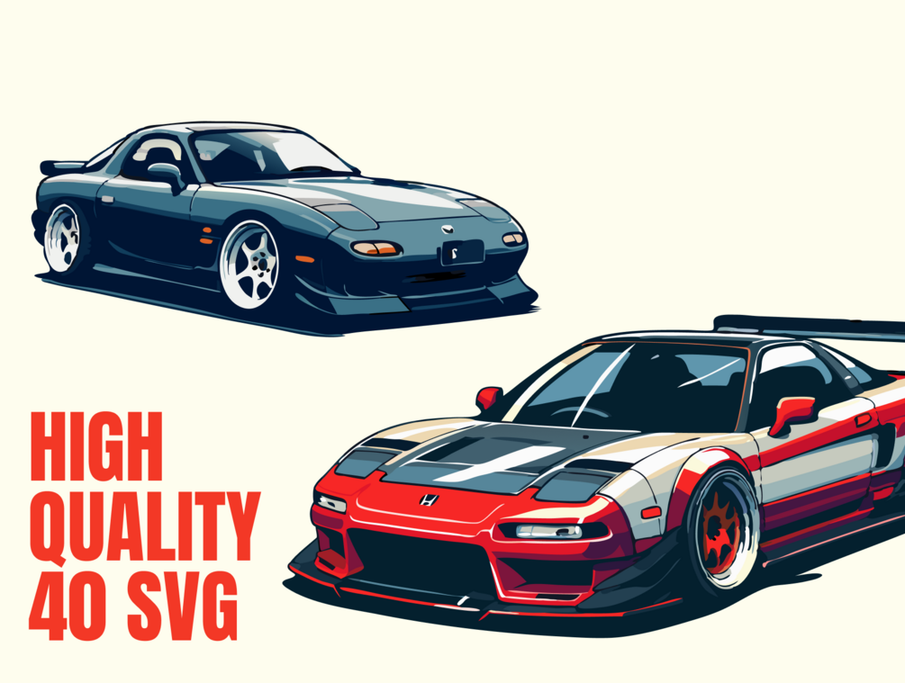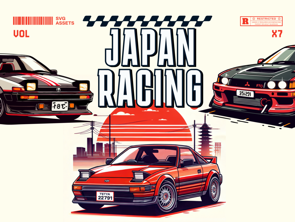 Capture the essence of Japanese car culture with the Japan Racing SVG Pack! This collection features high-quality illustrations of iconic Japanese street racing cars, all designed with precision and style. From sleek sports cars to classic street machines, these graphics are perfect for any automotive enthusiast looking to create art that celebrates the speed and culture of Japanese racing.